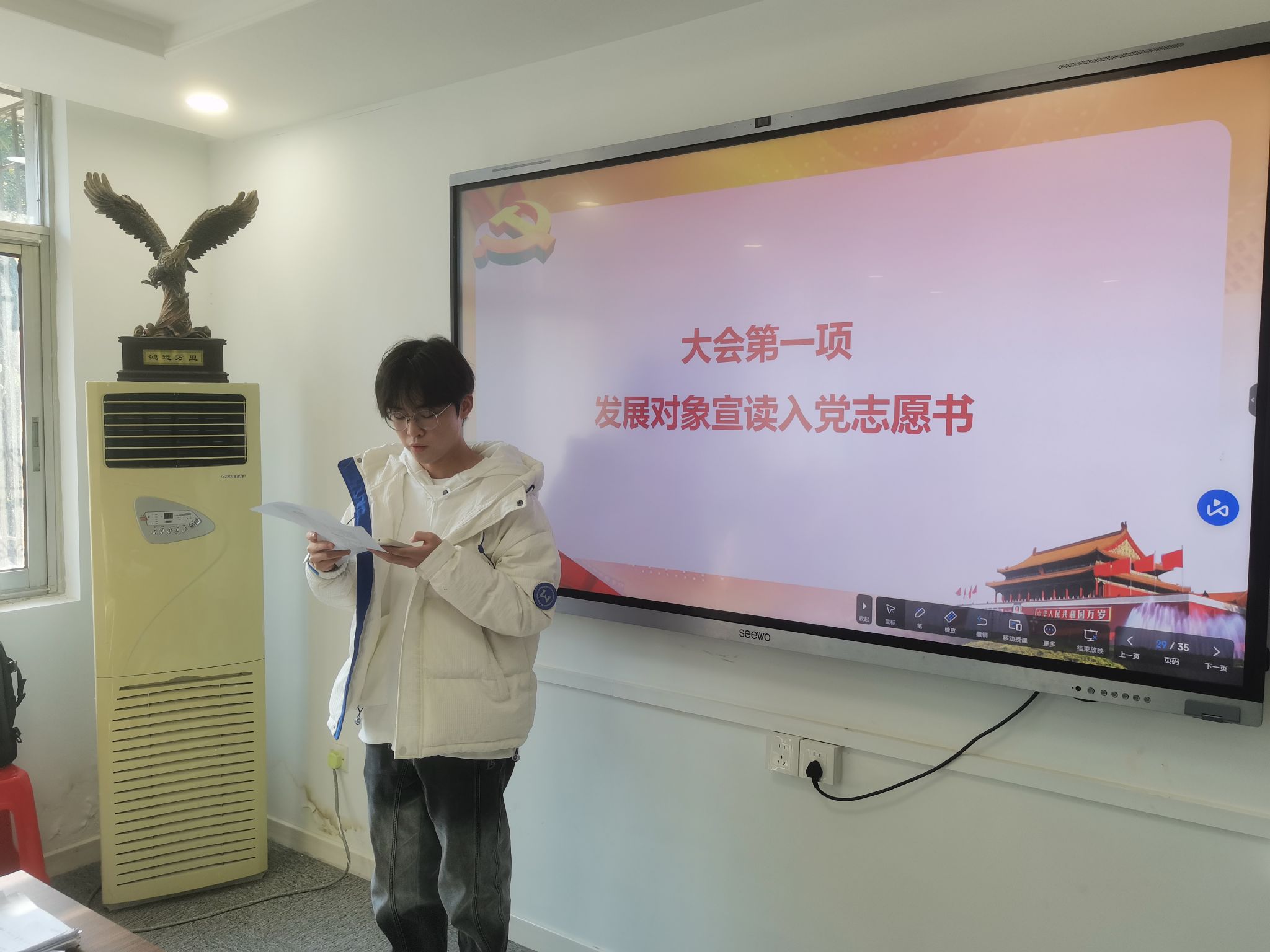 随后,全体同志在屈璐老师的领读下激情满怀地重温了入党誓词。在朗朗的宣誓中,大家仿佛回到了那个革命年代,感受到了先辈们的英勇无畏和坚定信念。入党誓词中充满了对共产主义理想的崇高追求,也提醒着每一位党员要始终坚守初心和使命,始终保持共产党员的先进性和纯洁性。四位同志表示以后将继续坚定理想信念,加强政治理论学习,为实现中华民族伟大复兴的中国梦而努力奋斗。