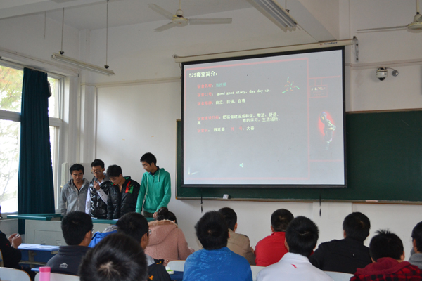 活动首先是分宿舍轮流展示,以PPT或者视频的形式,展现自己宿舍的文化理念、舍员风采、宿舍环境、特色活动等文化创建成果。有的宿舍专门设立了“宿舍宪法”,以法律的形式展现宿舍文化,独具匠心,别具特色;有的宿舍专门为此次宿舍文化展示活动制作精美的PPT、录制了视频,唱歌、跳舞齐上阵,各种搞怪展个性,好不热闹;还有的宿舍在精美的PPT背后是激扬的现场演说,引来现场笑声不断,好不欢乐。