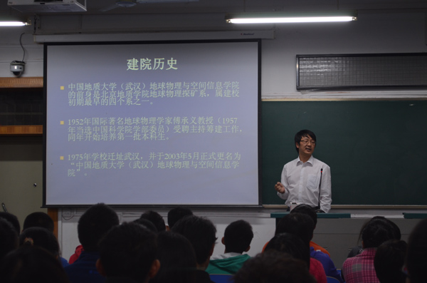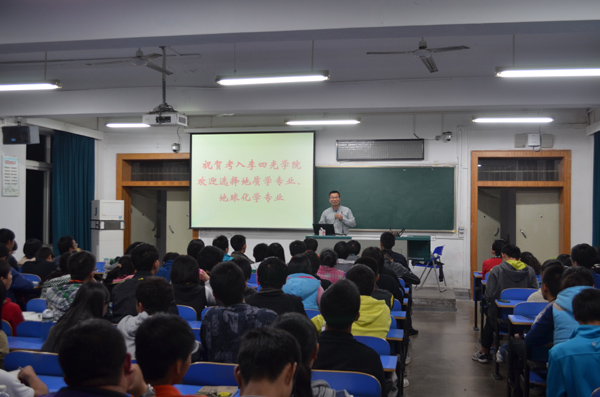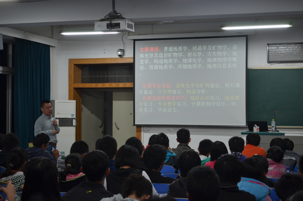 10月25日晚18:50,2012级学生选择专业方向指导交流会在教一楼205教室召开。为了让2012级同学对地质学、地球化学、地球物理学和遥感科学与技术这四个专业的基本现状、研究领域等有更深入的认识,科学选择专业方向,学院特别邀请了地球科学学院副院长王家生教授、地球物理与空间信息学院副院长牛瑞卿教授、信息工程学院副院长刘修国教授为同学们做相关专业介绍。AWC万象城娱乐2013级本科生到会聆听。