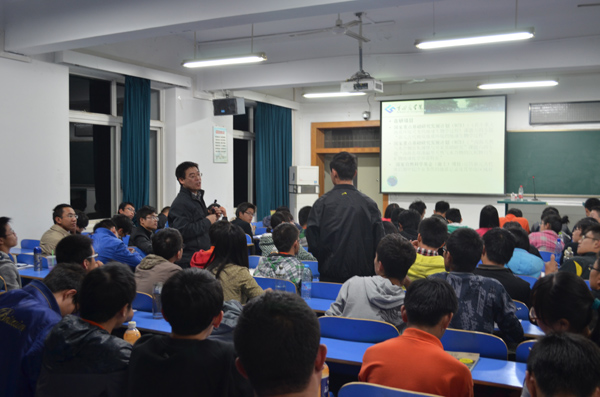 在互动交流阶段,同学们围绕自己感兴趣的专业方向,积极向三位老师请教,三位老师也被同学们强烈的求知欲望所感染,倾其全力答疑解惑。整个交流会从晚上六点五十一直持续到十点,气氛热烈活跃。这次指导交流会既对二年级的同学们开展专业选择提供了良好的指导,也让一年级的同学们对四个专业方向有了一定的认知,起到了很好的教育引导作用。