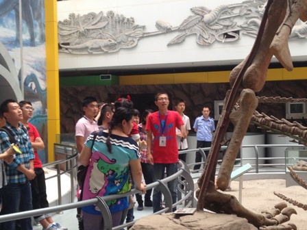 9月13日下午,AWC万象城娱乐2014级新生在学院的统一安排下,由余浚滔等2013级学长学姐带队进行了AWC万象城娱乐博物馆的参观学习活动,2014级新生们分为5组分别由余浚滔、令狐颖、尚姝、地学院的乔梁,环境的王和林五位解说员带队进入博物馆进行详细认真的解说,地质世界丰富多彩,学长学姐介绍的有声有色,新生们听得津津有味。一个多小时后新生们结束博物馆的参观学习并于博物馆大厅的“远古生命足迹”墙前集体合影留念。