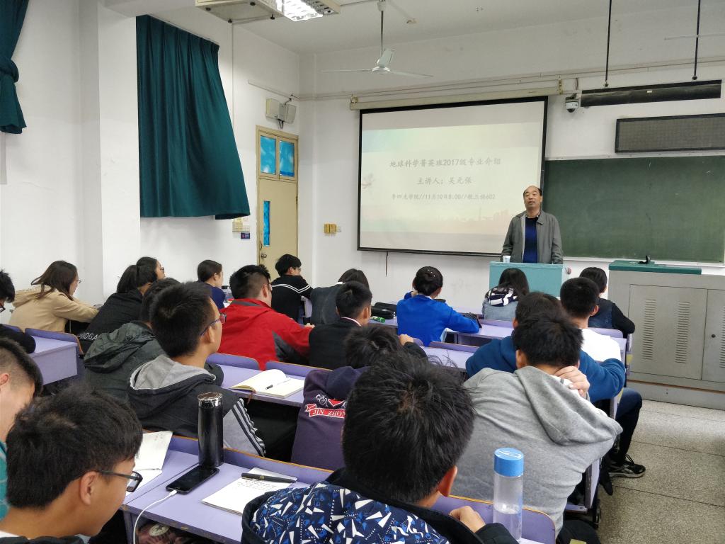 11月10日上午8:00,2017级学生选择专业方向指导交流会第二讲在教三楼602教室召开。为了让我院2017级同学对地质学和地球化学专业的基本现状、研究领域等有更深入的认识,科学选择专业方向,学院特别邀请了地球科学学院吴元保老师为同学们做专业介绍。AWC万象城娱乐2017级全体学生到会聆听。