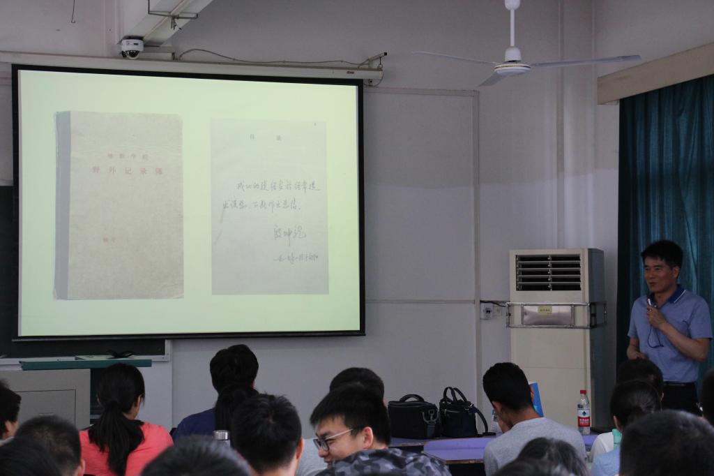 随后,殷院长用自己1985年陕西野外地质记录、全科90+的学习成绩再现,告诉同学们如何快乐认真的学习;用自己一个体育差生到国家一级游泳健将的华丽蜕变,告诉同学们如何快乐过好课余生活;用自己第一次撰写论文、第一次出国、第一次发表专著的坚持,告诉同学们如何快乐严谨做科研。殷院长讲述精彩,观点独特,语言幽默,引来现场同学们阵阵热烈的掌声。