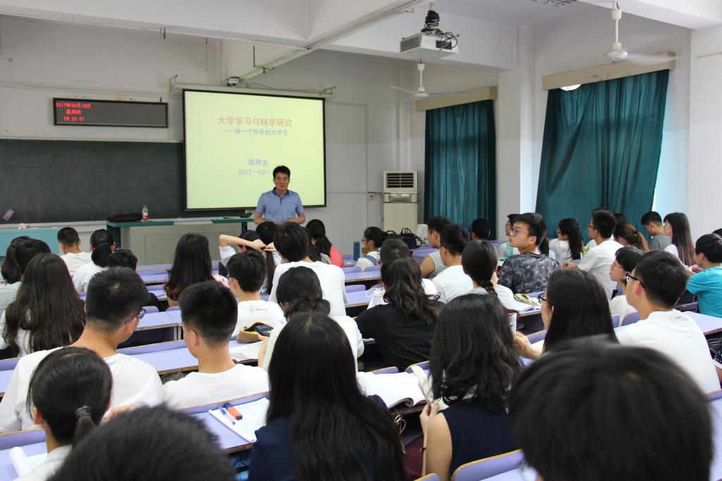 5月18日下午16:00,由我院和教务处联合举办的名师面对面之“奋斗的青春最美丽”青春励志讲座在教三楼301顺利举行,学院院长,教务处处长殷坤龙教授应邀为我院2015、2016级全体学生、李四光计划在校学生讲授如何“做一个快乐的大学生”。