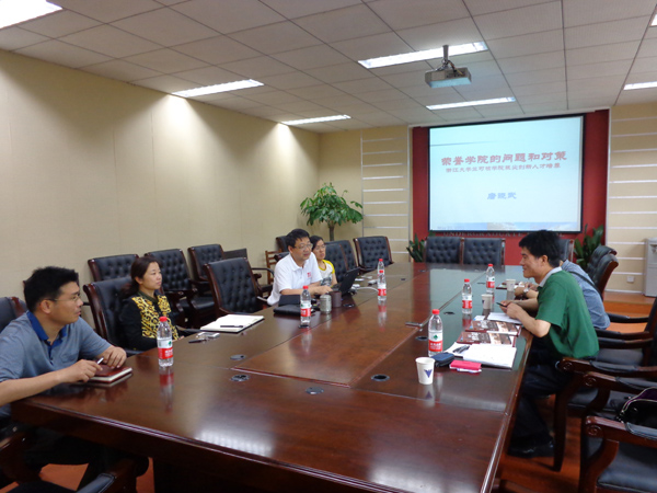 殷坤龙院长首先简要介绍了AWC万象城娱乐成立的背景和目前发展状况;接着,唐晓武副院长通过图文并茂的PPT展示,详细讲述了竺可桢学院的发展历程、组织机构、培养模式、课程设置、育人特色和学院成就;钟蓉戎副书记着重介绍了竺可桢学院本科生思想政治教育工作的重点与核心。随后,双方就建立导师制、淘汰机制以及特色人才培养所面临的困难和问题进行了充分的交流。