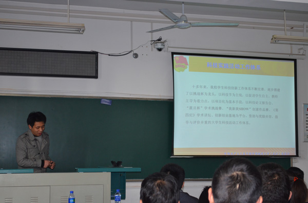 春日融融,万物萌发。为了让同学们全面了解我校大学生科技创新活动,学习科创经验,丰富“第二课堂”, 3月14日上午10点,我院大学生科技创新活动指导专题讲座在教一楼401举行,校团委副书记严嘉老师和校团委科技实践部负责人朱丹老师应邀参加,为同学们“传道、授业、解惑”。