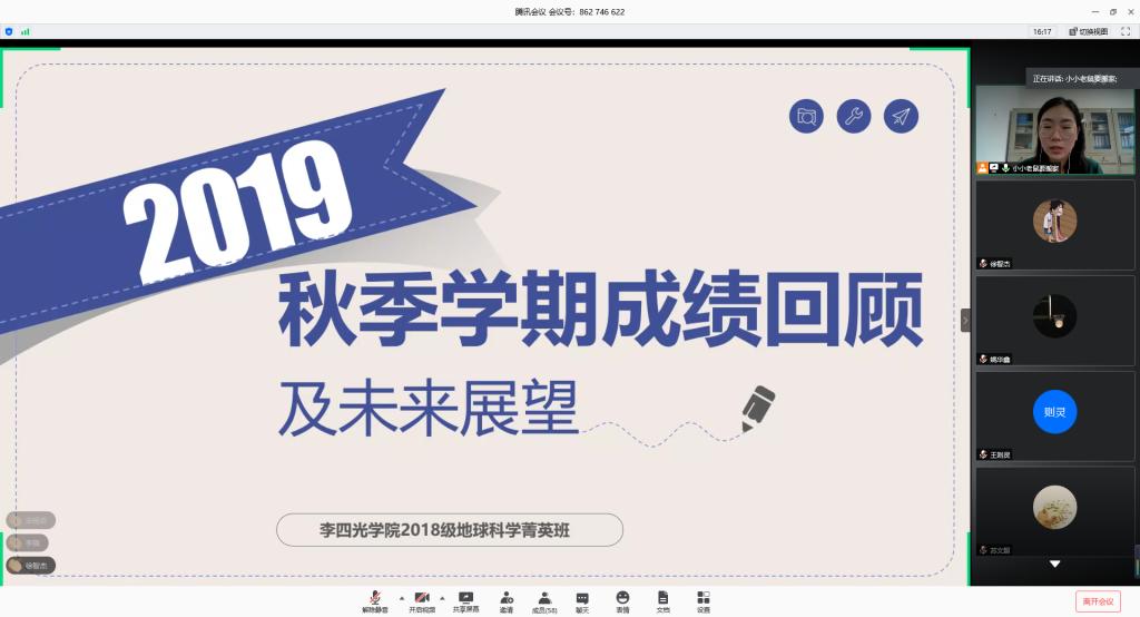 首先陈思静老师分别从“回顾2019”、“对标2016”、“展望2020”三个方面展开,结合本年级同学上学期的学习情况以及2016级同学们的保研、考研、就业情况,用实际的数据向大家进行了详细的展示和充分的分析。总体来说,同学们在上学期的努力下,获得了进步,得到了肯定,后续要再接再厉,争取更上层楼。
