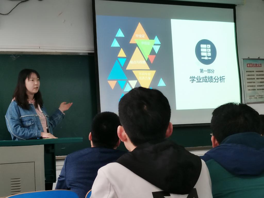 首先,辅导员李若萌老师公布了同学们上学期的学业成绩,通过不同专业上学期应修学分、绩点排名、挂科统计等数据对同学们大学第一学期的成绩进行了整体梳理和总结,让同学们更清晰地认识学业成绩的概念,也对尚未达到自己预期的同学起到了督促效果,让大家对大学的学业引起足够的重视,以更加努力的姿态投入到本学期的学习中。