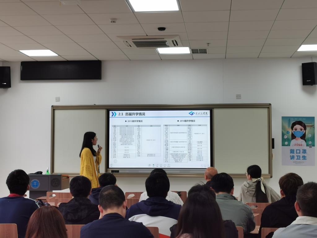 首先思静老师为大家梳理了同学们目前的总成绩和四六级情况,介绍了我院历届毕业生的升学情况,希望同学们能利用保研前的最后一学期努力提升成绩、学好英语,争取通过保研升学。