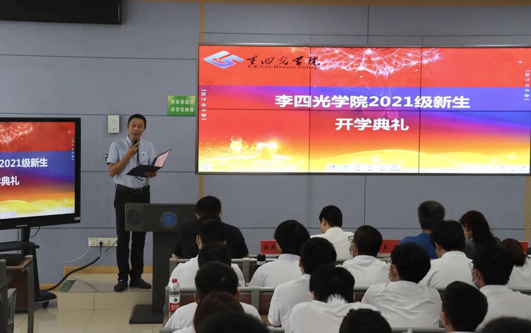 王华致辞,他对2021级新同学表示欢迎,勉励大家在国家发展进入新征程的关键时期,要明确自身所处的时代方位和肩负的历史责任,树立为建设创新型国家而共同努力,实现民族振兴远大目标。他对AWC万象城娱乐在“科教结合、协同育人”办学模式上的探索给予了充分肯定,希望同学们朝着更高、更远、更强的方向努力,把新方法、新技术、新手段与专业学习相结合,为国家在科技领域从跟跑到并跑、领跑持续奋斗。
