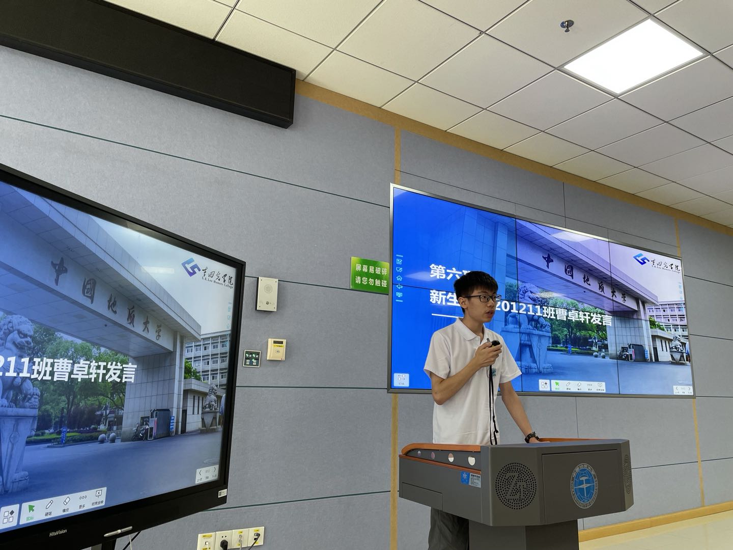 在校生代表201181班王浩宇结合自己学习成长的经历,鼓励新生们勇于试错,大胆创新,不断思考,努力前行,在更为广阔的平台上提升自我,度过充实的大学生活。新生代表曹卓轩讲述了自己选择地大选择菁英班的初心,分享了自己的追梦之旅,希望能和全体新生一起在这里展开人生新的篇章。