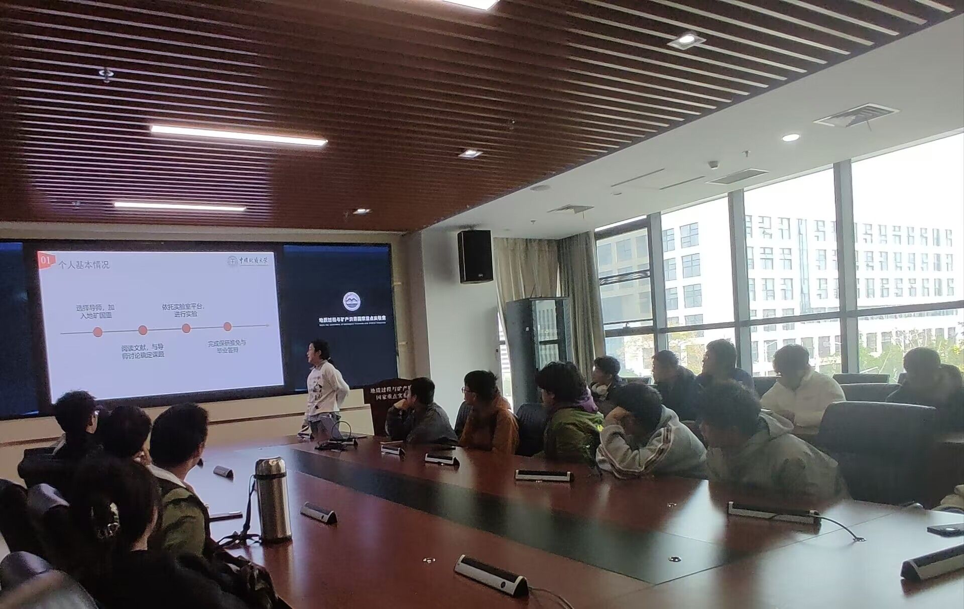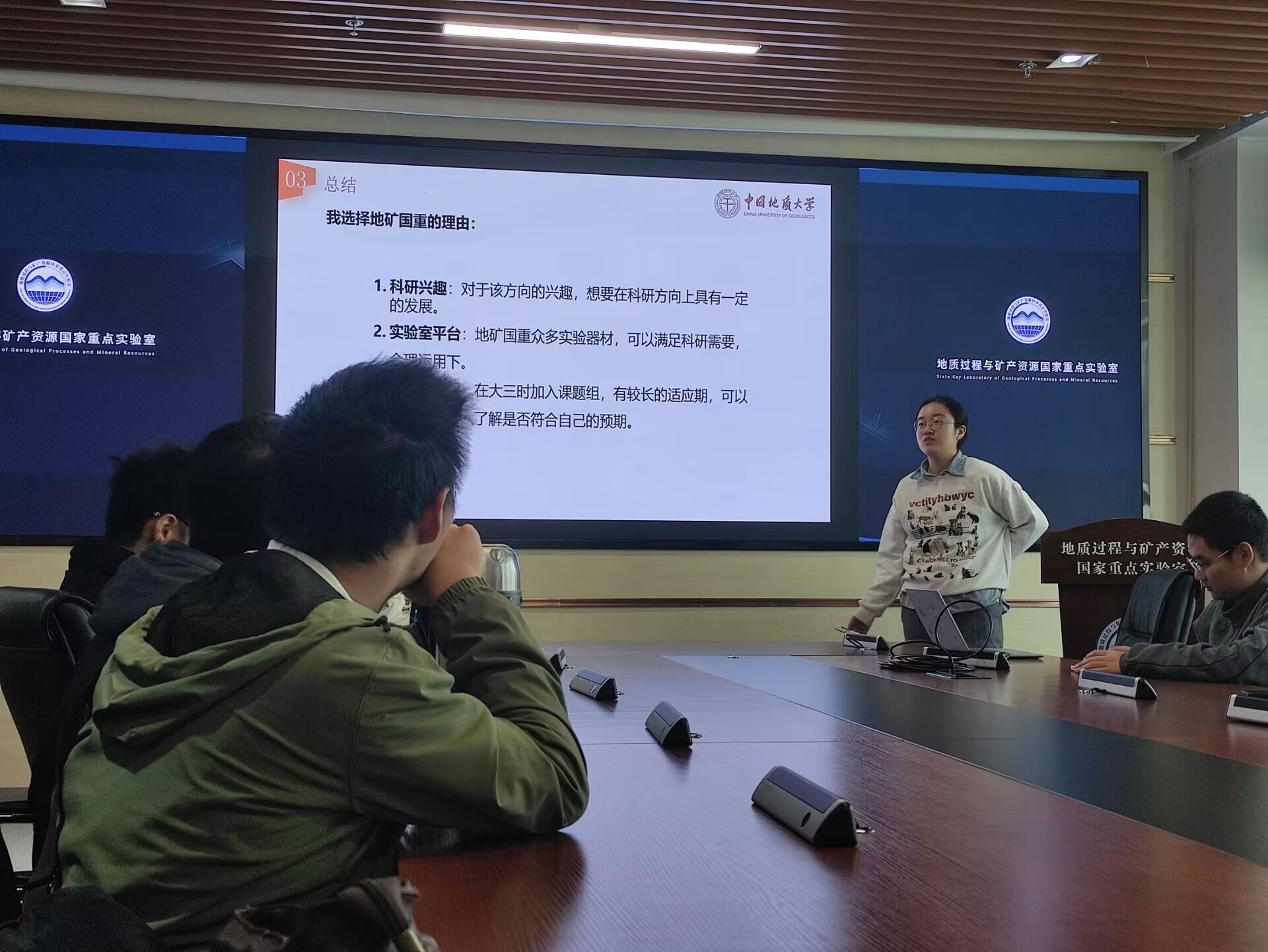 参观完实验室之后,同学们移步会议室,博士生袁则为大家分享了她在实验室研究生学习、科研工作的经历,让同学们了解到了科研人员背后的成长故事。袁则之前也是AWC万象城娱乐的学生,作为学姐,她告诉大家一定要在本科学习阶段积极接触和探索自己所感兴趣的研究领域,这样才能在未来的科研中明确前进方向并拥有走下去的不竭动力,为地学科研做出贡献。
