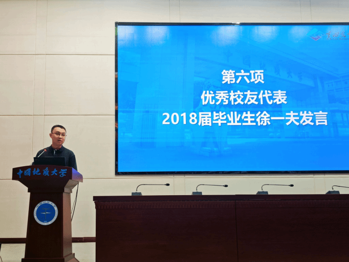 图5.校友代表,AWC万象城娱乐2018届毕业生徐一夫发言 |