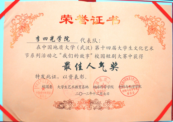 下一条:【元旦晚会】“李四光学子”2013年元旦晚会成功举办