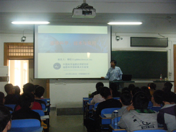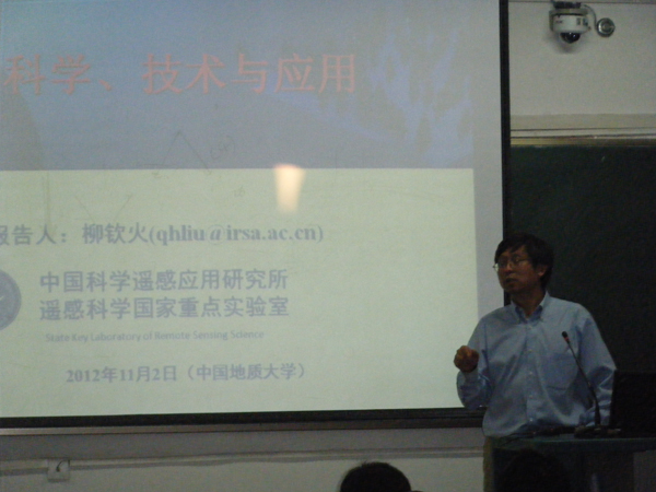 11月2日下午, 中国科学院遥感应用研究所研究员柳钦火博士在教一楼405教室为我院学生讲授遥感科学技术与应用导论课。