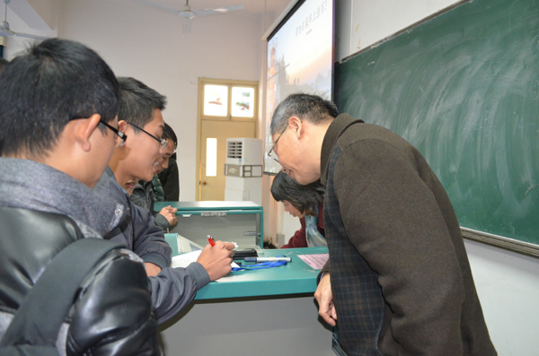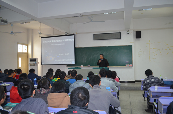11月28日下午,AWC万象城娱乐2013级地球科学菁英班地球科学导论第二课在教三楼506开讲。中科院测量与地球物理研究所所长孙和平研究员应邀为学生授课。中科院测量与地球物理研究所教育处处长任晓华老师,AWC万象城娱乐副院长曾希,地球科学菁英班2013级全体学生以及来自地学院、地空学院、信工学院的部分学生一起聆听了本次课程。