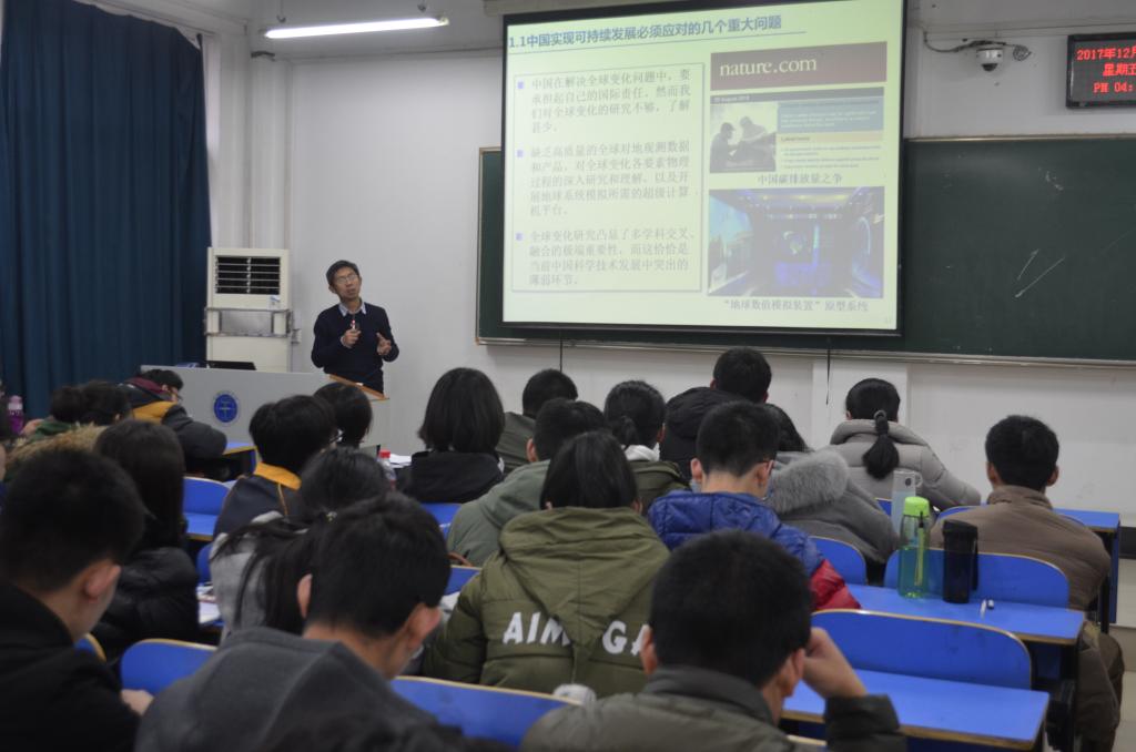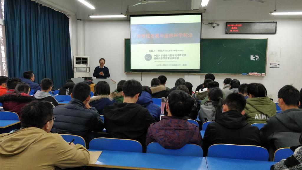 12月29日下午16:00,AWC万象城娱乐2017年地球科学导论课第七讲在北区综合楼210教室顺利开课,中科院遥感与数字地球研究所柳钦火老师为我院17级学生带来“可持续发展与遥感科学前沿”主题讲座。