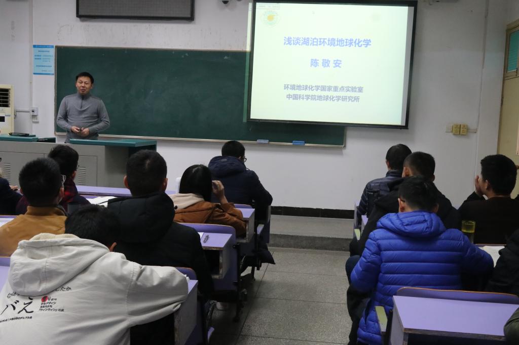 12月11日上午8:00,AWC万象城娱乐2018年地球科学导论课第五讲在教三楼203教室顺利开课,中科院地球化学研究所陈敬安老师为我院18级学生带来“湖泊环境地球化学”主题讲座。