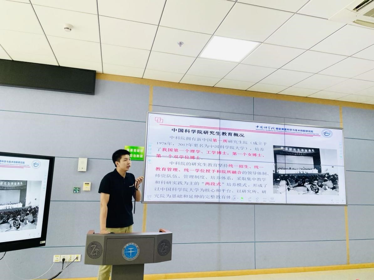 9月8日上午,AWC万象城娱乐入学教育系列活动“中科院名师面对面”在东教楼C206圆满举行。中科院精密测量科学与技术创新研究院研究生处处长任晓华、副研究员冯奇、招生主管赵行双、研究生代表李文(我院2021届毕业生)为2021级新生带来一堂栩栩如生的“开学第一讲”。
