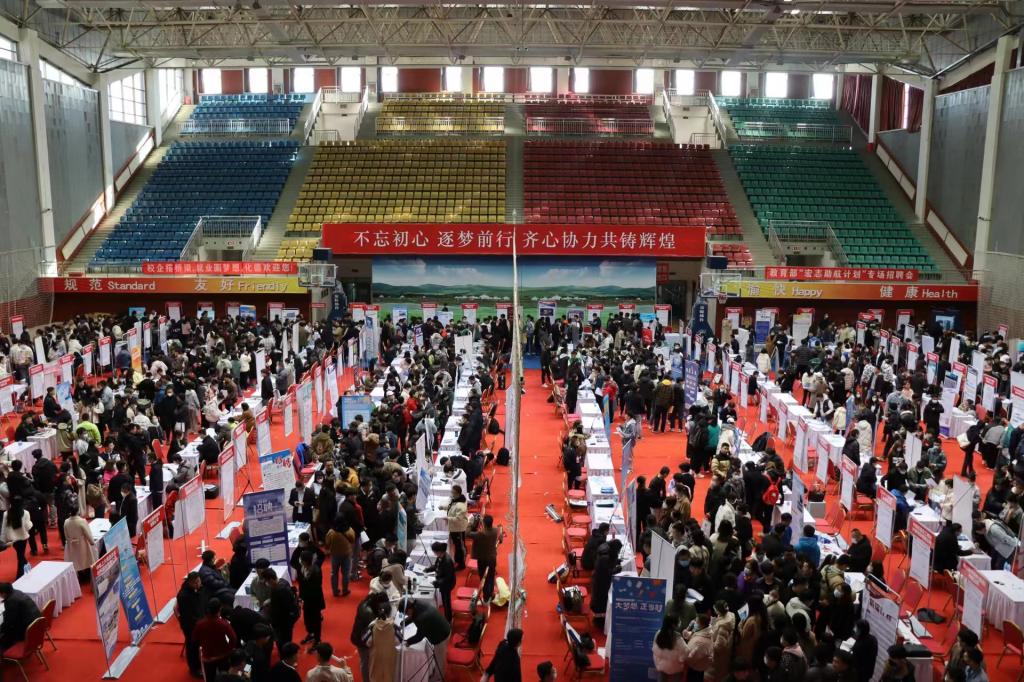 3月12日,内蒙古自治区2023届高校毕业生春季促就业攻坚行动暨beat365英国官方网站2023届毕业生春季双选洽谈会在校体育馆举行。