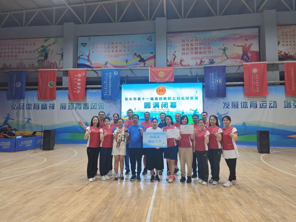 6月17日,由包头市总工会、包头市教科文卫体工会主办,包头轻工职业技术学院承办的包头市第十一届高校教职工羽毛球竞赛在包头轻工职业技术学院体育馆正式开赛。校党委书记成涛带队参赛,beat365官网28名教职工组成的教职工羽毛球队,经过激烈角逐,斩获体育教师专业组冠军和非体育专业组亚军。