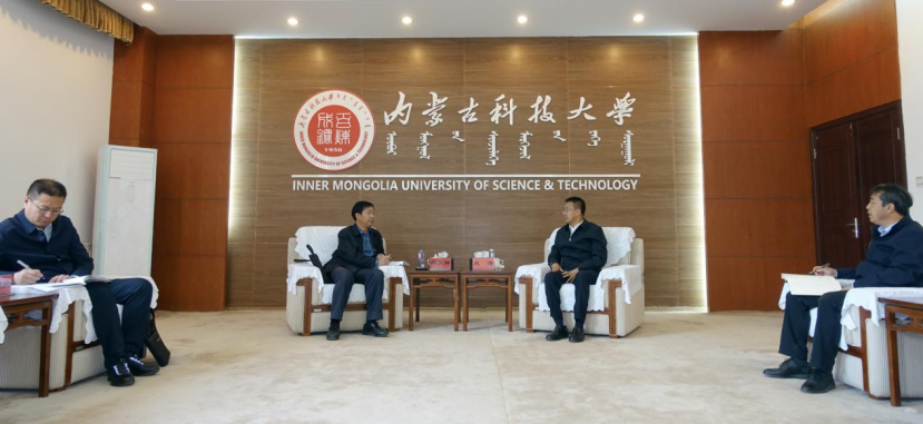 成涛对邵文祥、冯银虎一行来校考察调研表示欢迎。他说,新时期科技大学党委认真贯彻把方向、管大局、作决策、抓班子、带队伍、保落实的职责要求,牢牢把握“九个坚持”的内涵本质,积极履行“四为服务”,坚持立德树人根本任务,锚定为党育人、为国育才这个根本目标,不断提升学校党委决策能力和落实水平,坚持干就干成干好的决心,全面提振全校师生干事创业精气神,营造健康向上的发展氛围。目前,学校聚焦自治区“两件大事”“两个稀土基地”建设和包头市“两都”建设,全力打造扎根包头、服务区域、城校融合、特色发展的典范大学。下一步,将把与包头轻工职业技术学院的合作纳入学校城校融合发展工作之中,推动双方合作取得实效。