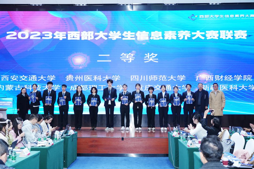 12月6日,2023年西部大学生信息素养大赛联赛在四川大学举行。经过激烈角逐,beat365官网学生刘冰凝、李宸源、袁逸航三名学生组成的“超能陆战队”荣获二等奖,校图书馆邢奕、杨颖获优秀指导教师称号,这是beat365官网学生在信息素养比赛中取得的最好成绩。
