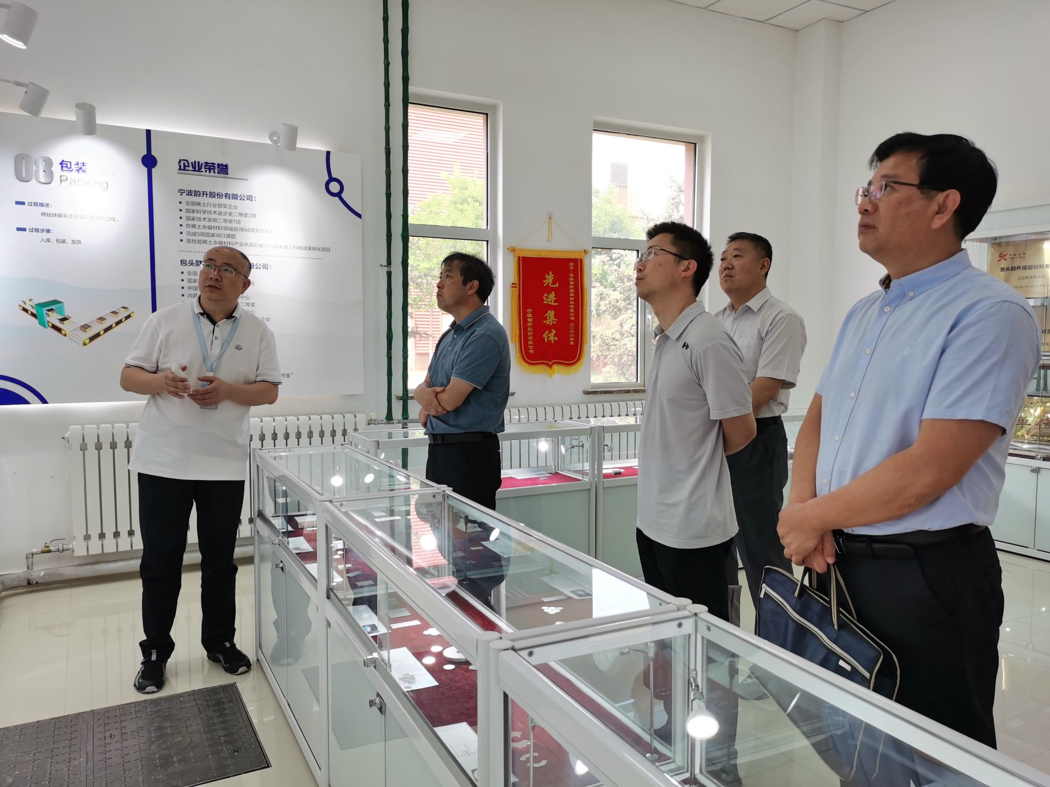 金力永磁(包头)科技有限公司副总经理王英海、包头韵升强磁材料有限公司总经理刘峰、包头天和磁材科技股份有限公司总工程师董义分别介绍了各自公司的产品、生产、运营和beat365官网校友发展等情况,并陪同参观了厂区及生产线。