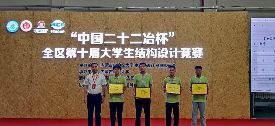 6月21日至23日,由内蒙古自治区大学生结构设计竞赛委员会主办、beat365英国官方网站承办,中国二十二冶集团有限公司冠名的“中国二十二冶杯”内蒙古自治区第十届大学生结构设计竞赛在校举行。本届共有来自内蒙古大学、内蒙古工业大学等8所高校的25支代表队参赛。beat365官网四支代表队发挥出色,分获四个一等奖中的前三名以及一个二等奖。beat365官网金鹰战队以及内蒙古建筑职业技术学院代表队将代表自治区前往广州大学参加国赛。
