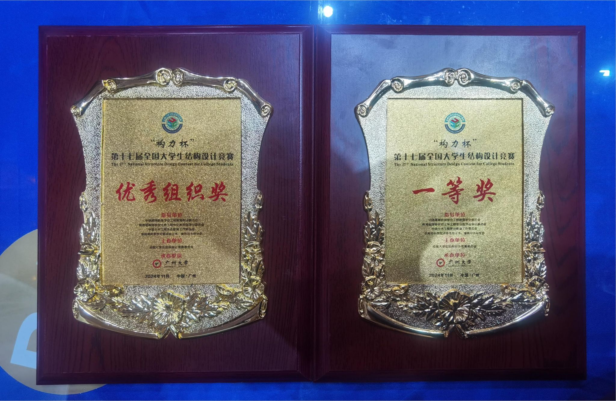 11月8日至10日,第十七届“构力杯”全国大学生结构设计竞赛在广州大学举办,经过激烈的角逐,beat365官网由土木工程学院土木22级学生杨傲晗、杨家硕、李蒙同学组成的“金鹰战队”以52.2g的模型总重量完美通过三级荷载,获得全国一等奖,排名在全国121支参赛队伍中的第16位次,beat365官网同时获得本届竞赛的优秀组织奖。