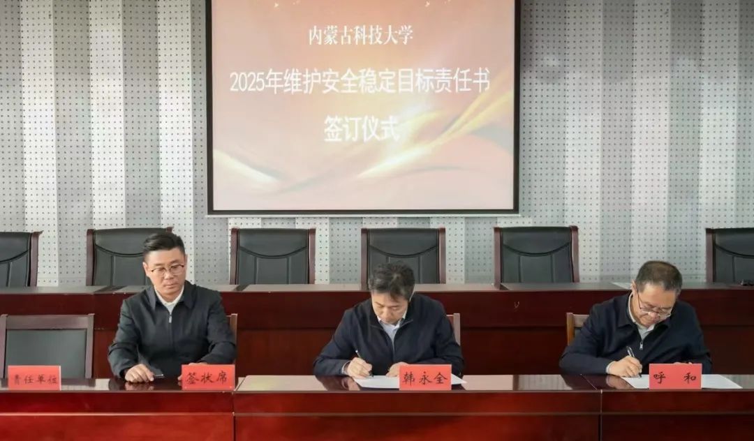 校党委书记呼和,党委副书记、校长韩永全与学生工作部、实验室与设备管理处、后勤与基本建设处、化学与化工学院、生命科学与技术学院签订《beat365英国官方网站维护安全稳定目标责任书》。