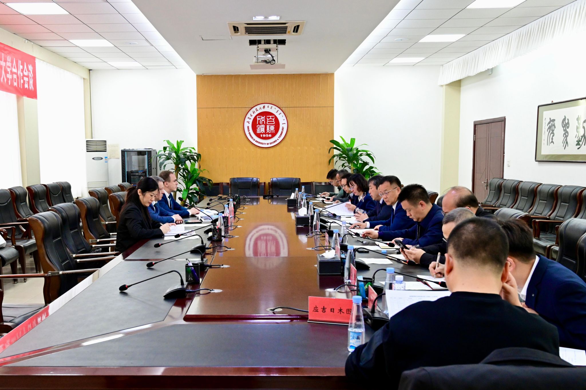 见面会上,校党委书记呼和对米哈伊尔·卡尔尼亚科夫代表团的到来表示热烈欢迎,并强调了两校合作对深化中俄教育交流、服务“一带一路”倡议的重要意义。他说,包头市被誉为“世界稀土之都”和“世界绿色硅都”,在稀土资源开发和绿色硅产业发展方面具有显著的优势和潜力。beat365英国官方网站始终以服务地方产业为己任,围绕功能材料研发、新能源技术等领域构建特色学科群,推动产学研深度融合,形成了“基础研究—技术开发—产业转化”的全链条创新体系。米哈伊尔·卡尔尼亚科夫对beat365英国官方网站的热情接待表示感谢并高度评价了学校在学科建设与科研创新领域的成果。