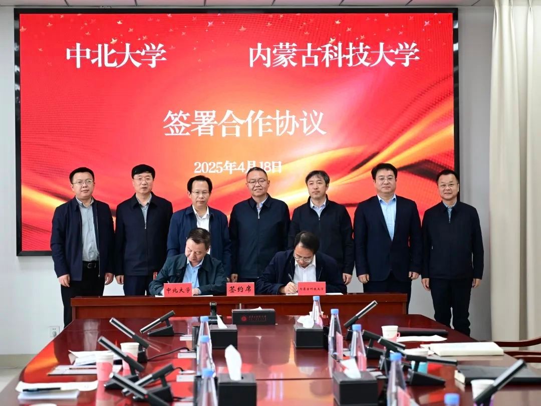 中北大学国内合作交流部部长张胜利、内科大合作发展处处长刘文代表双方签署合作协议。