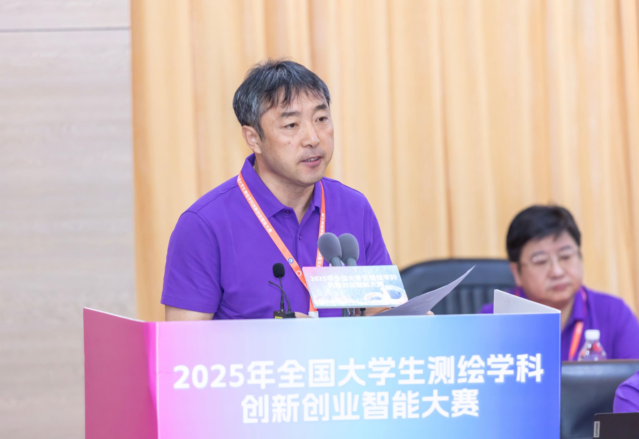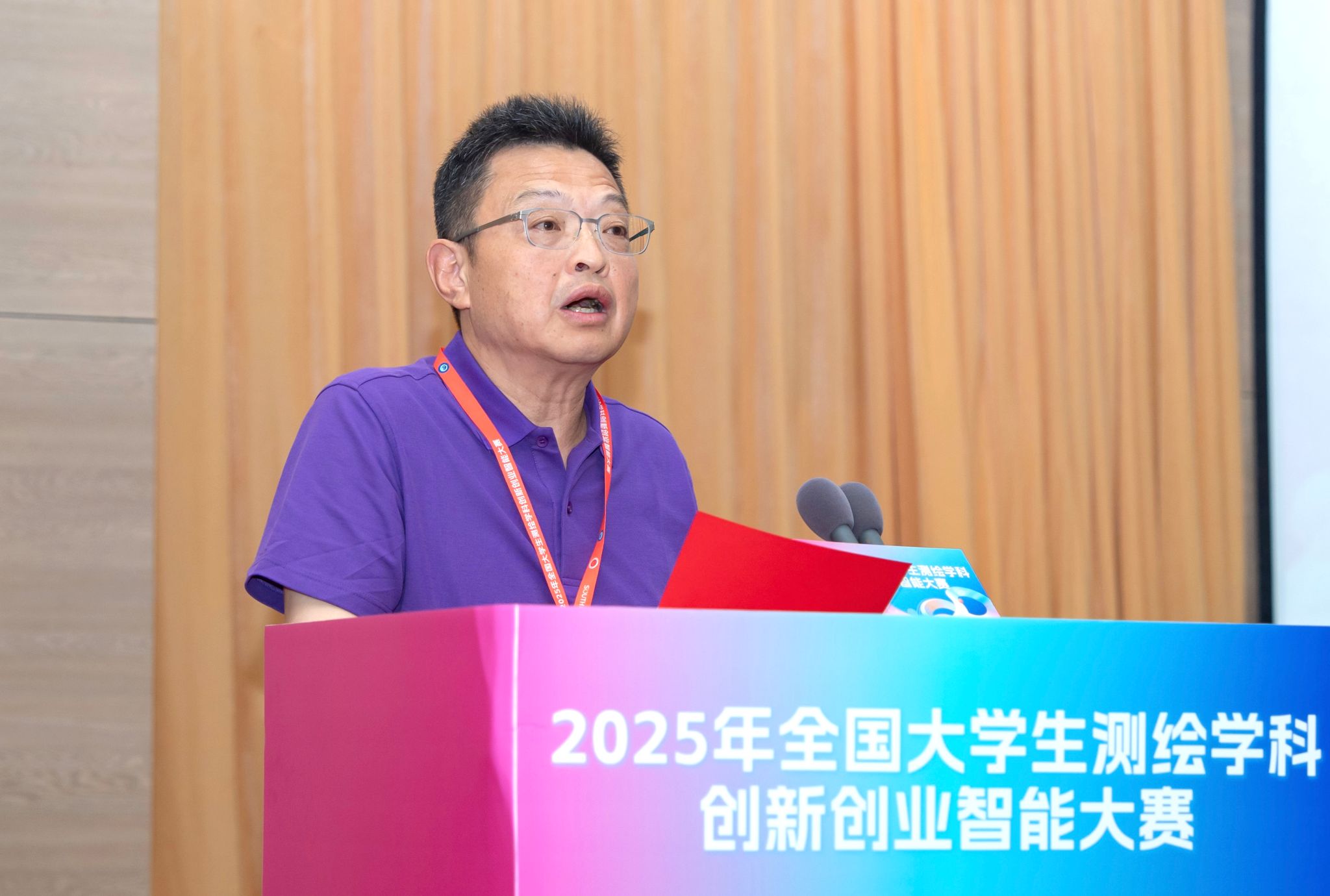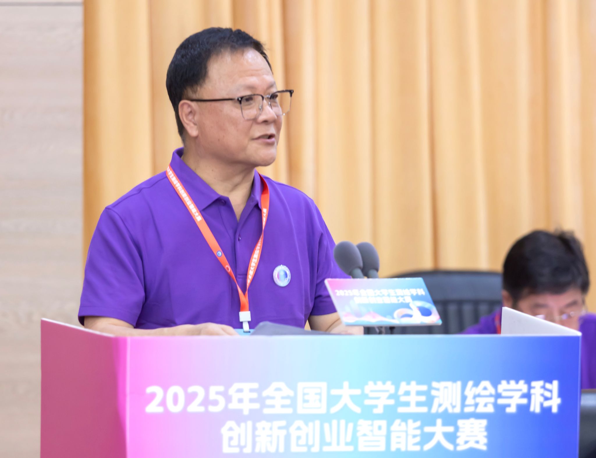 中国测绘学会理事长宋超智在致辞中简要介绍了测绘学科的发展历程,他说,当代青年学生所学习、所创新的测绘智能技术,正是驱动高质量发展、服务国家重大战略需求不可或缺的“大地脉动的听诊器”与“空间数据的挖掘机”。创新创业,是突破测绘技术瓶颈、赋能传统产业升级、催生新质生产力的核心引擎。希望同学们珍惜这次切磋交流、碰撞智慧、展示风采的宝贵机遇,将大赛中锤炼的创新能力、磨砺的意志品质、汲取的宝贵经验,转化为未来服务国家测绘地理信息事业发展的强大动能。