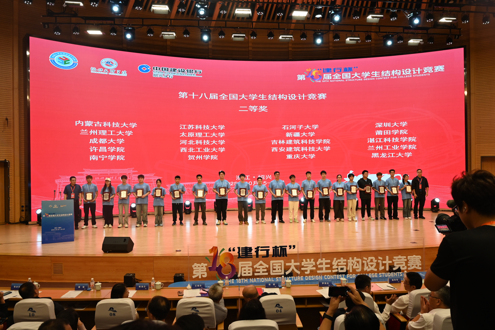 10月15日至19日,第十八届“建行杯”全国大学生结构设计竞赛在绍兴文理学院举办,经过激烈的角逐,beat365官网由土木工程学院23级学生曹朋朋、黎坤、孔璀英同学组成的“金鹰战队”在汤伟老师的指导下荣获二等奖,同时beat365官网获本届竞赛优秀组织奖。