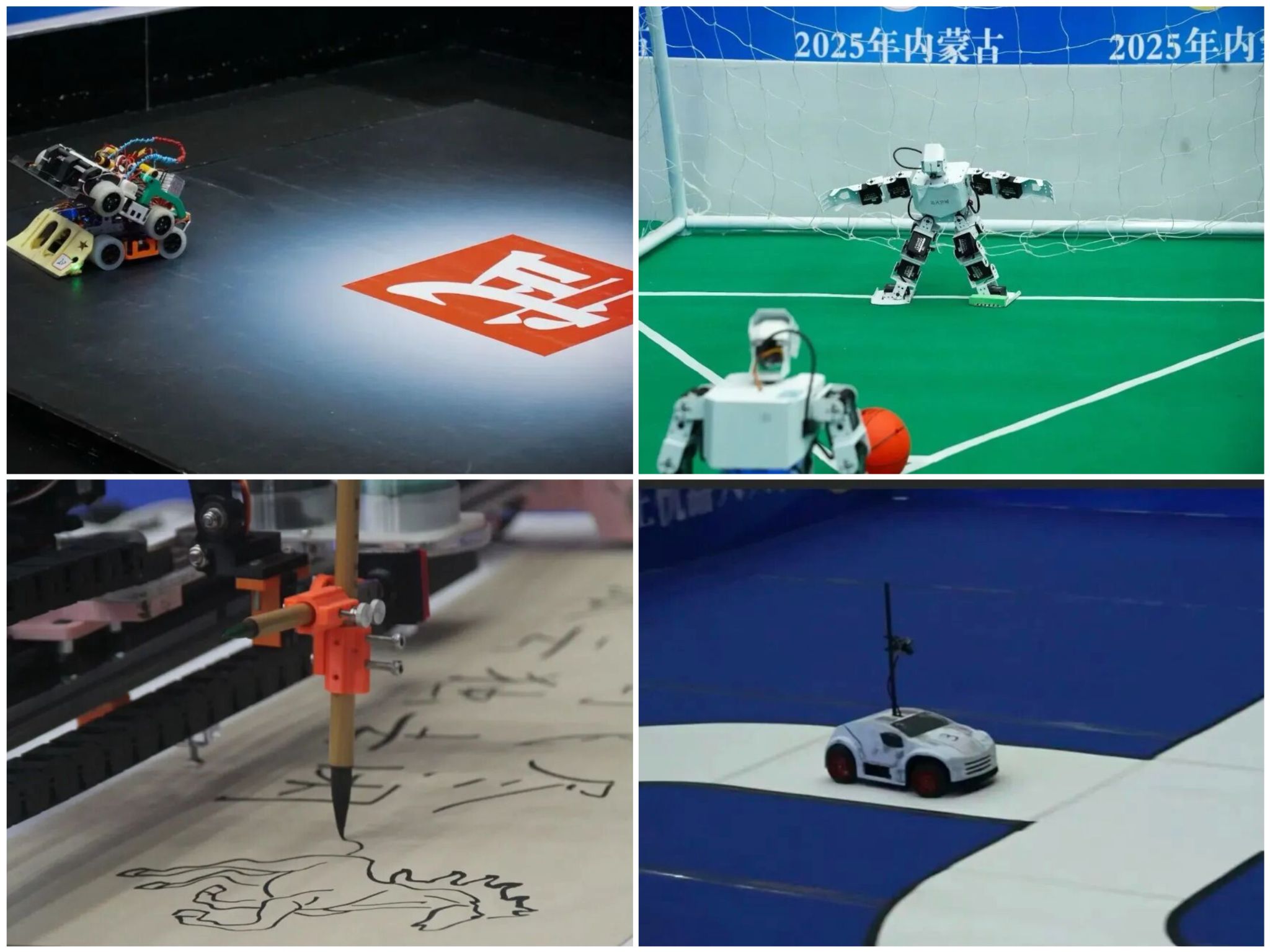 华北五省(市、自治区)大学生机器人大赛共设6个大类,涵盖8个小项的赛项,包含机器人武术擂台赛(无差别单人组、无差别双人组),类人机器人竞技体育赛(田径、点球),服务机器人赛,机器人书画赛,智能机器人无人驾驶赛以及人工智能与机器人创意设计赛。华北五省(市、自治区)大学生计算机应用大赛下设三个赛道:人工智能在应用场景的创新设计与开发、移动互联网人工智能应用程序开发、具身智能在物理载体上的应用与开发。
