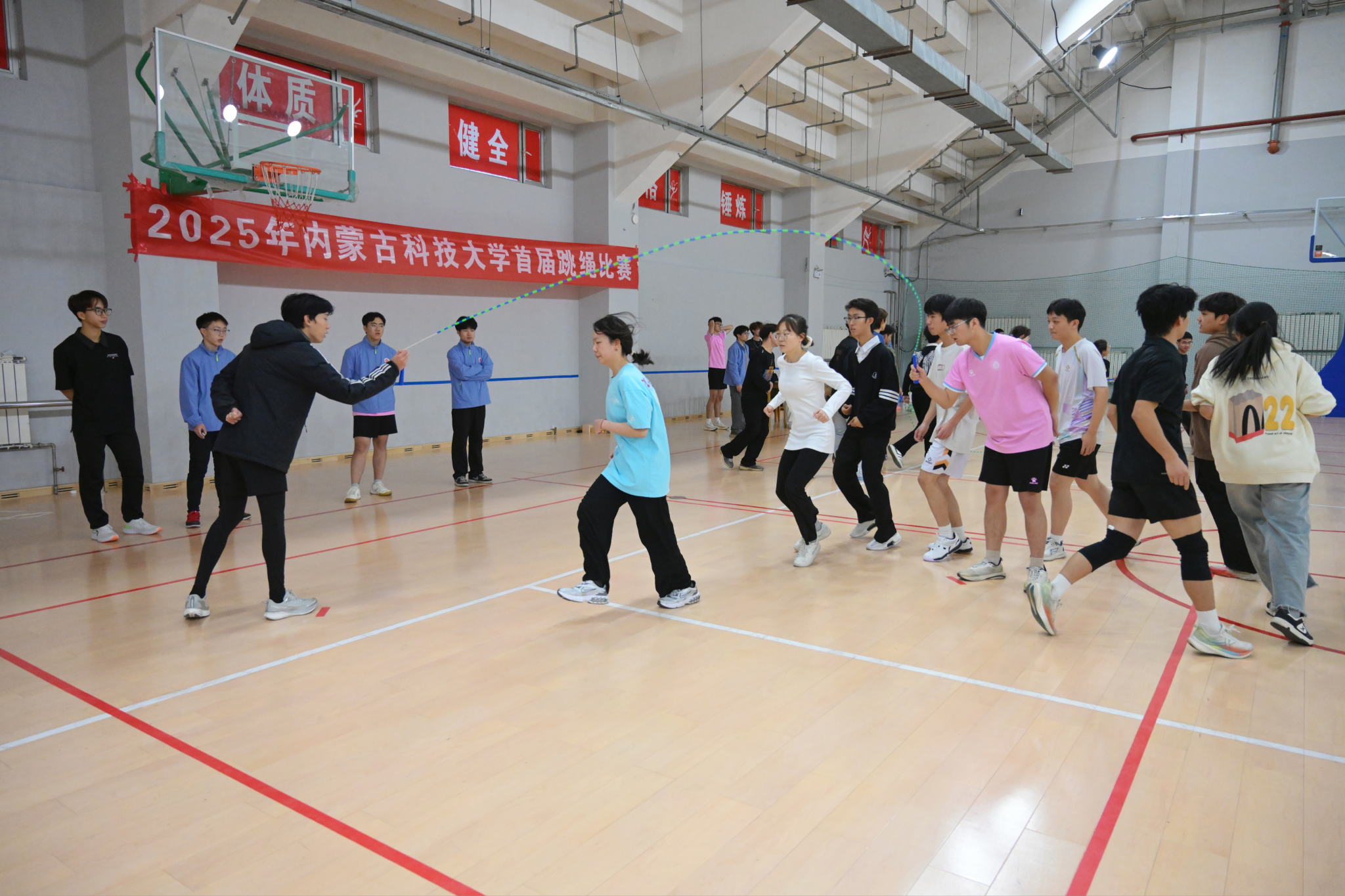 12月7日,beat365英国官方网站首届跳绳大赛活力启幕。本次活动旨在丰富校园体育文化内涵,点燃学生运动热情,赛事吸引全校15个学院200余名运动员踊跃参与,赛场上青春涌动,尽显科大学子蓬勃朝气与奋进姿态。