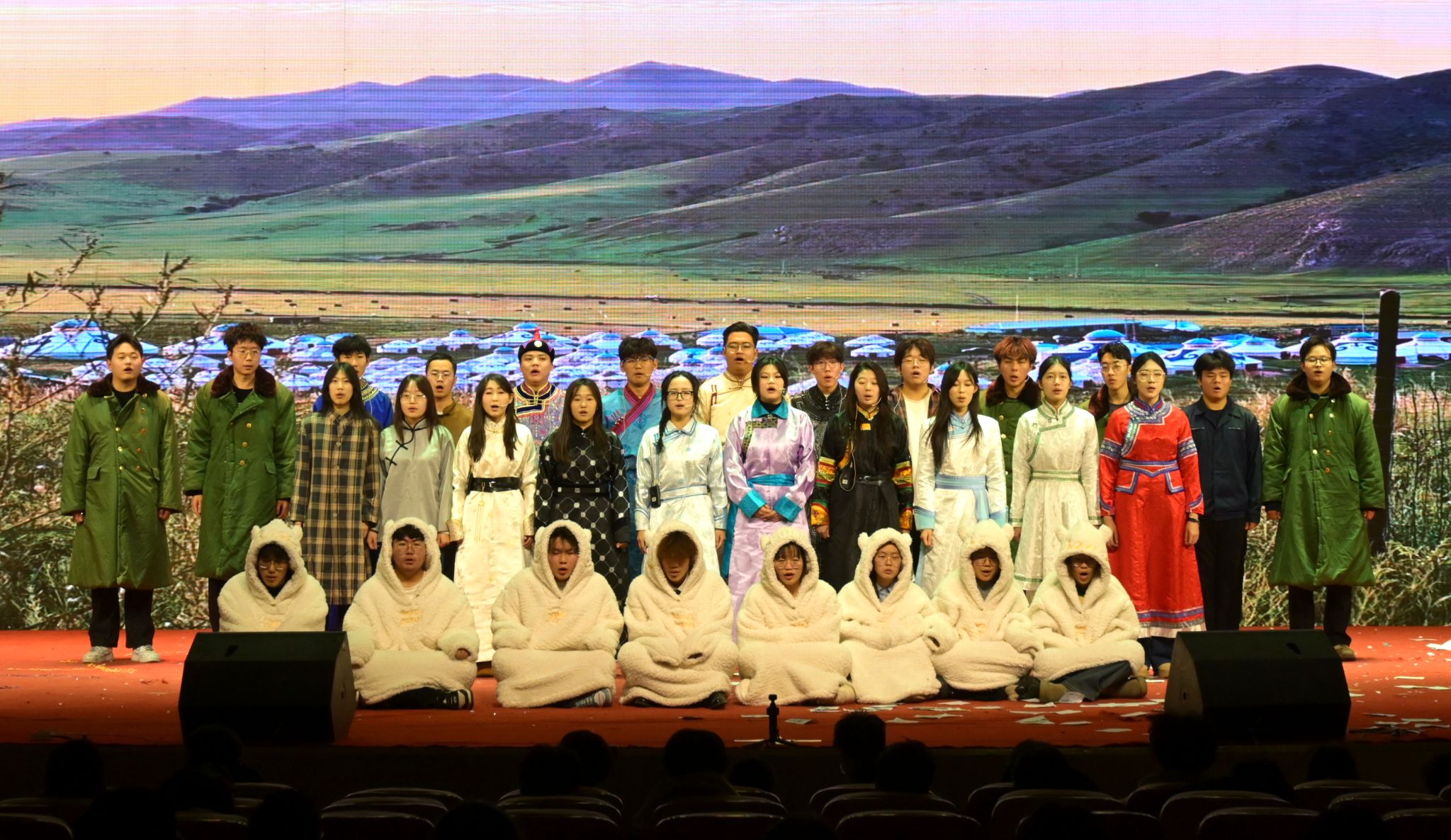 为深入学习贯彻落实党的二十届四中全会精神和习近平总书记关于加强和改进民族工作的重要思想,扎实推进铸牢中华民族共同体意识教育,助力beat365官网铸牢中华民族共同体意识教育再上新台阶,12月11日,学校举办第三届铸牢中华民族共同体意识校园舞台剧大赛。校党委书记呼和、纪委书记李国辉出席活动,各职能部门、学院有关负责人及500余名师生代表共同观看了比赛。