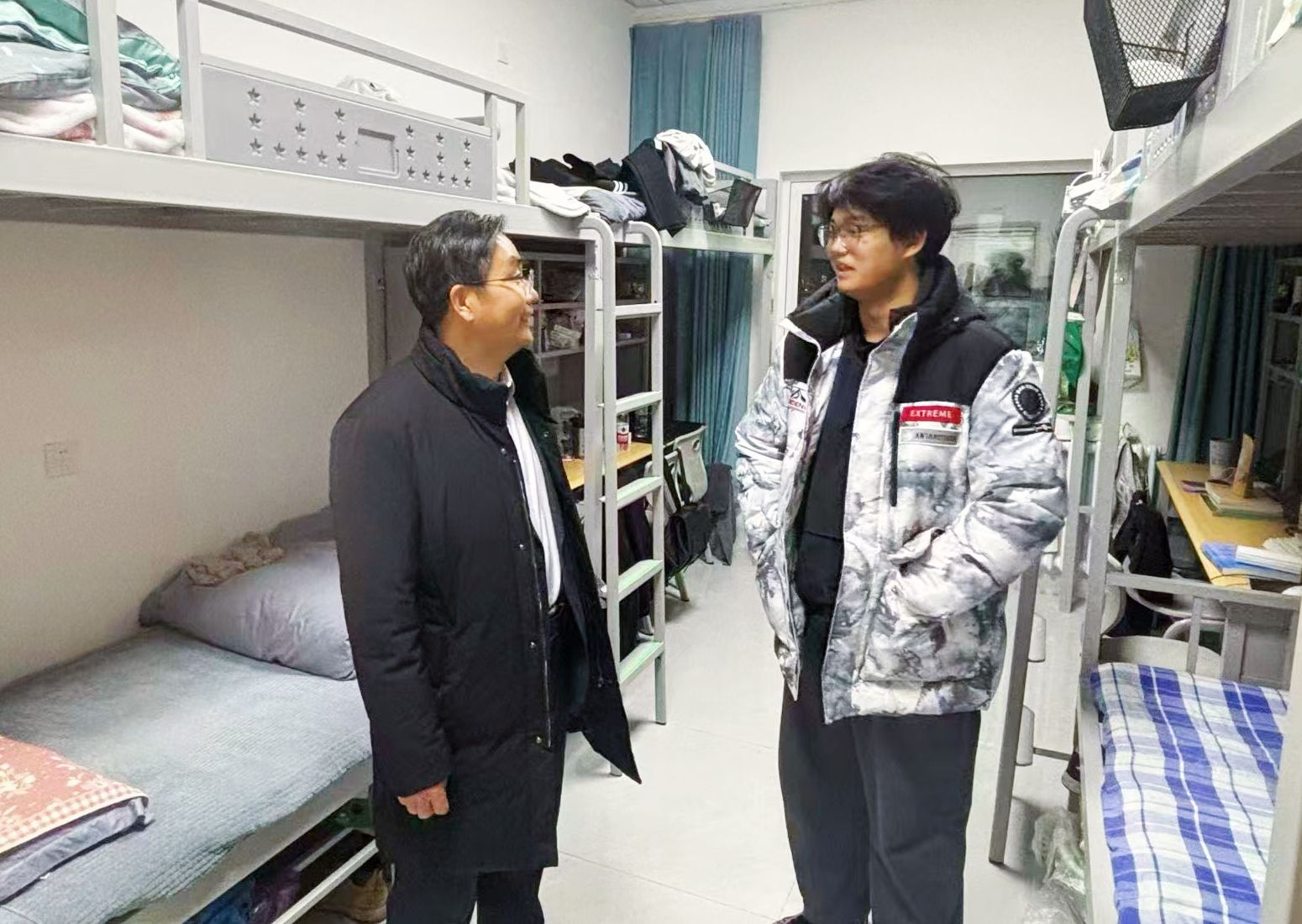 呼和一行先后来到逸夫楼、明德楼、春华楼、27、28号学生宿舍、临曦楼现场听取相关单位工作汇报,并与学生亲切交流,询问期末温书迎考情况及假期学习生活安排,叮嘱大家增强安全意识、合理规划时间,并向他们送上节日问候和新春祝福。