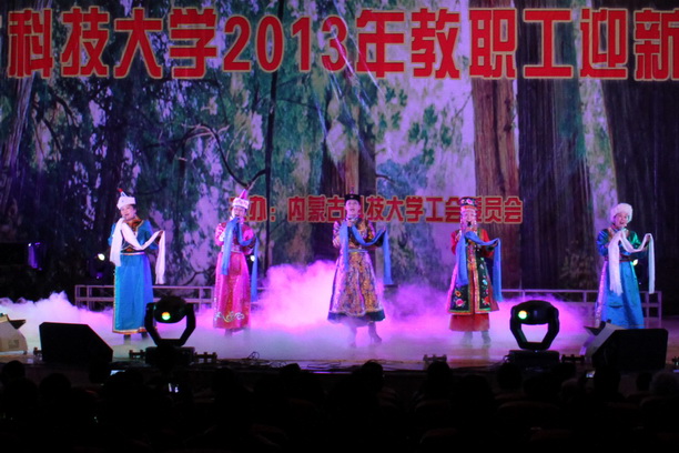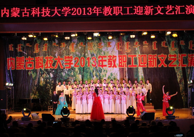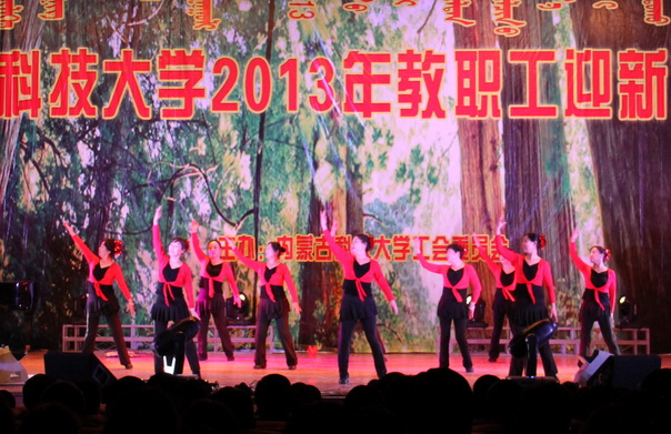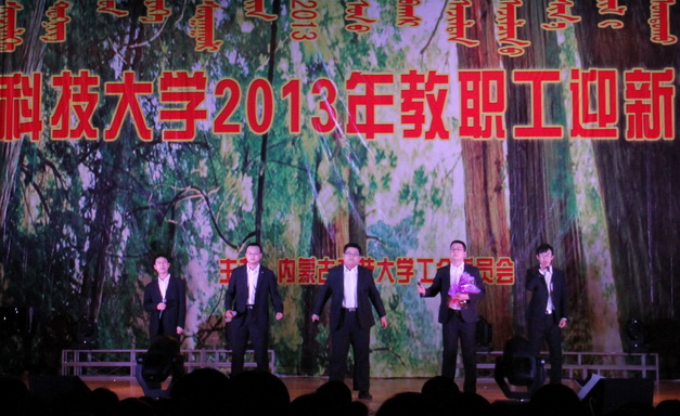 晚会上精彩纷呈的节目不时迎来阵阵掌声,让广大教师职工在经过一年的紧张工作之后充分放松身心。建工、能环等学院教工表演了歌曲、舞蹈等节目,工程训练中心、图书馆、离退处、学工部、体育部教工表演了武术、朗诵等节目。教职工在表演节目的同时也表达了在新一年里对学生的期盼、对同事的祝愿,对内科大的热爱。