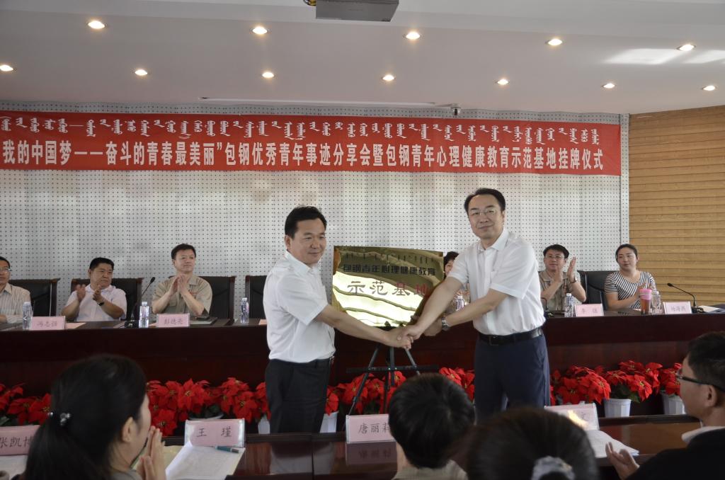 6月20日,“我的中国梦——奋斗的青春最美丽”包钢优秀青年分享会暨包钢青年心理健康教育示范基地挂牌仪式在beat365官网行政楼A201举行。校党委常委、副校长吕晓琪、组织部、宣传部、学工部(团委)负责人,以及包钢集团公司党委副书记贾振国、包钢集团公司党委宣传部、组织部、团委负责人共同出席了挂牌仪式。