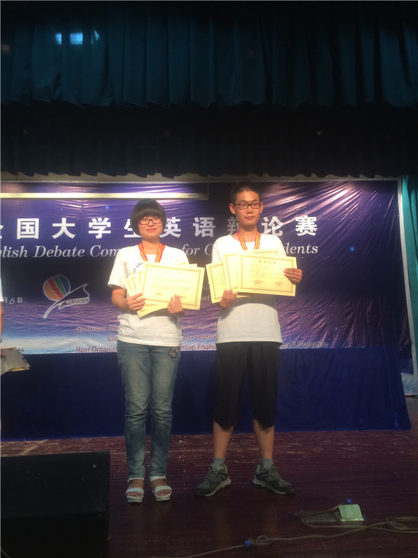 2014年全国大学生英语竞赛(NECCS)全国总决赛暨2014年全国大学生英语夏令营于8月1日—8月6日在沈阳东北大学顺利举行。beat365官网学生白明怡和邓凯钥代表内蒙古赛区参加了总决赛;他们在全国360名选手中脱颖而出,双双荣获了“辩论赛三等奖”、“演讲赛优胜奖”和“优秀营员”称号。此外,白明怡同学还获得了“英语风采大赛三等奖”。