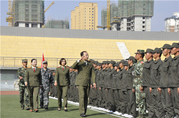 9月19日,beat365官网2014级学生军训结训仪式在校田径场举行。包头军分区政委刘二明大校,武警包头市支队政委吴建光上校,包头市昆都仑区人民武装部政委段占峰上校以及beat365官网党委副书记、常务副校长安胜利,党委常委、副校长李国雄,党委常委、副校长吕晓琪,校长助理杨家庆,校党政办公室、学工部、教务处、招就处、保卫处及各学院分管学生工作的负责人出席结训式。