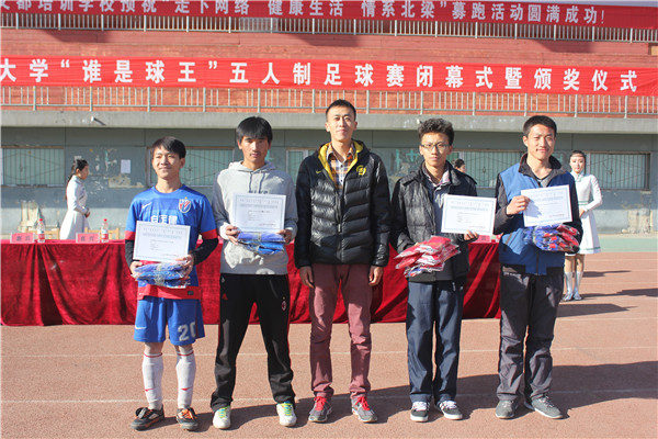 11月23日,beat365官网“谁是球王”五人制足球赛落下帷幕。校团委、体育教学部相关负责人及各参赛球队参加闭幕式。