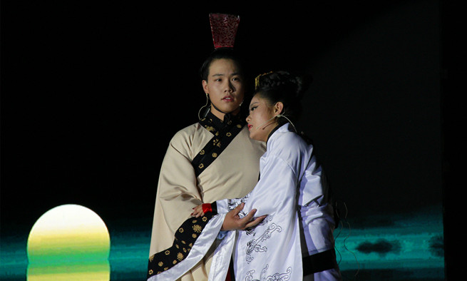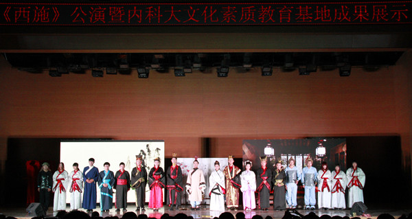 话剧《西施》,由文法学院学生自编自导,改编后结构严谨,情节流畅。故事由范蠡与西施定情讲起,历经吴越相争、西施入吴、夫差兵败,至范蠡与西施重逢止,不但完整呈现范蠡与西施的故事,且更深入地探讨爱情和救国重任难以两全时,范蠡与西施内心的无奈与挣扎。