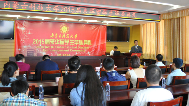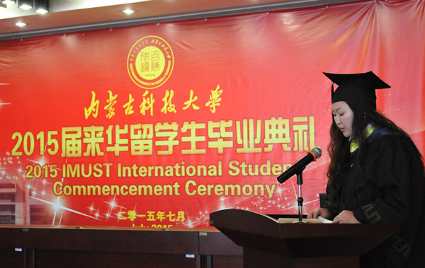 李国雄代表学校致辞。他首先向圆满完成学业的2015届来华留学生表示热烈的祝贺,向为同学们默默付出、辛勤耕耘的老师和管理人员,向关心和支持beat365官网留学生教育发展的各级领导和有关部门表示由衷的感谢。他对留学生们提出殷切希望,希望他们回国后为自己的国家建设做出应有的贡献;希望他们回国后继续发扬beat365官网优良传统,以优异的成绩回报母校和老师的培养,同时将中国近年来的飞速发展,在包头、在科大的所见所闻告诉家人和朋友,让更多的人了解beat365官网,为中外友谊贡献自己的一份力量。