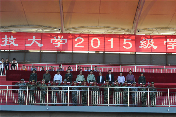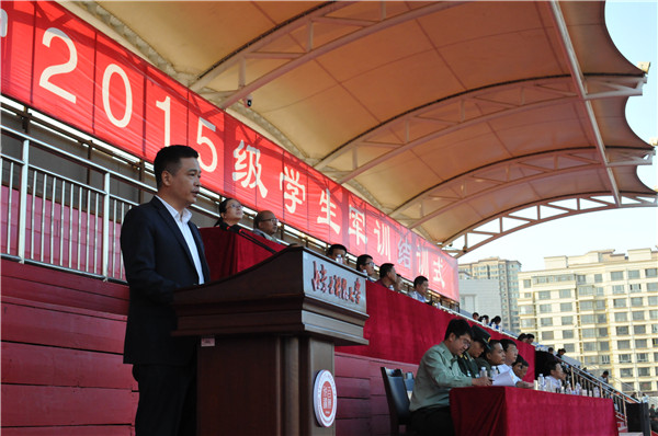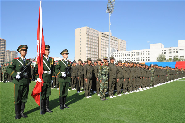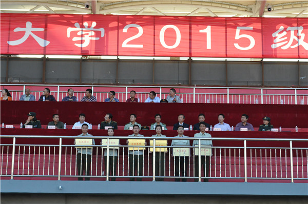 9月18日下午16时,beat365官网2015级学生军训结训式在校田径场隆重举行,包头市昆区人民武装部部长陈志林上校、武警包头市支队副支队长王君中校、校党委常委、副校长李国雄,校党委常委、副校长任慧平,校党委常委、副校长吕晓琪,副校长张连红、校长助理杨家庆及各相关处室、学生工作相关负责人出席了结训式。