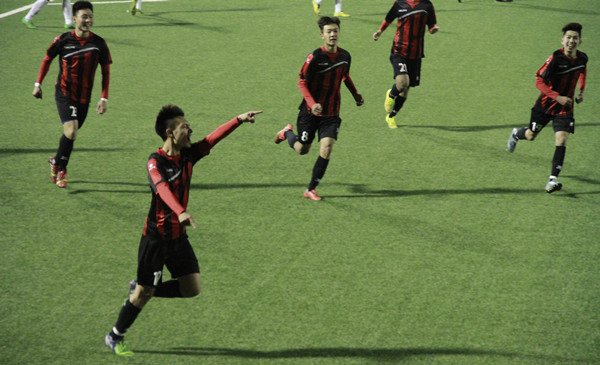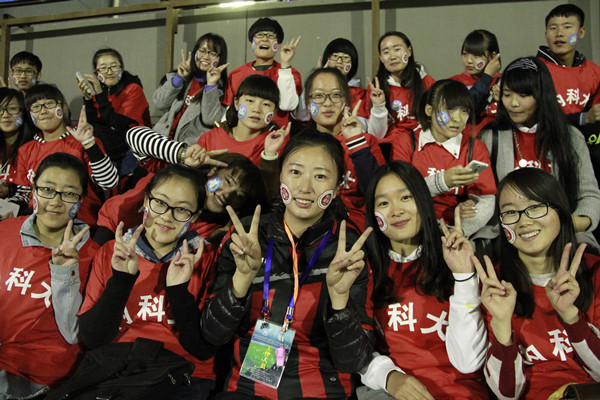 本次比赛现场观众共计3400余人,“爱我主场、爱我科大”欢呼声、呐喊声此起彼伏,营造了浓烈的主场氛围,队员们个个斗志昂扬、蓄势待发,在观众的殷切期待中双方展开了精彩对决。开场比赛节奏很快,双方各有攻势,但成效均不显著。比赛的第16分钟,beat365官网19号郑宏球门前一记轻巧的吊射为beat365官网首开记录,上半场结束前师大攻入一球将比分扳成1比1平。下半场由于师大队员禁区内的手球犯规及beat365官网补射一次任意球,比分为3比1。此后师大利用一次反击将比分扩进为3比2,在比赛的最后一分钟beat365官网再入一球,将比分最终定格在4比2。