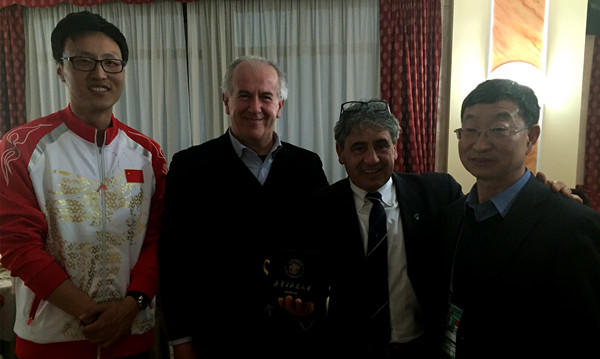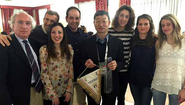 | 中国代表团与意大利代表团互赠礼物合影留念 |
