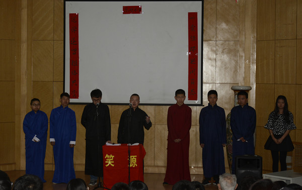 4月8日,beat365官网笑源相声社第二届专场演出——“源来一笑”在科技讲座厅举行。文法学院相关负责人及老师参加活动,包头市图乐相声社诸位老师应邀出席,78岁的相声演员张乃林老先生莅临指导。